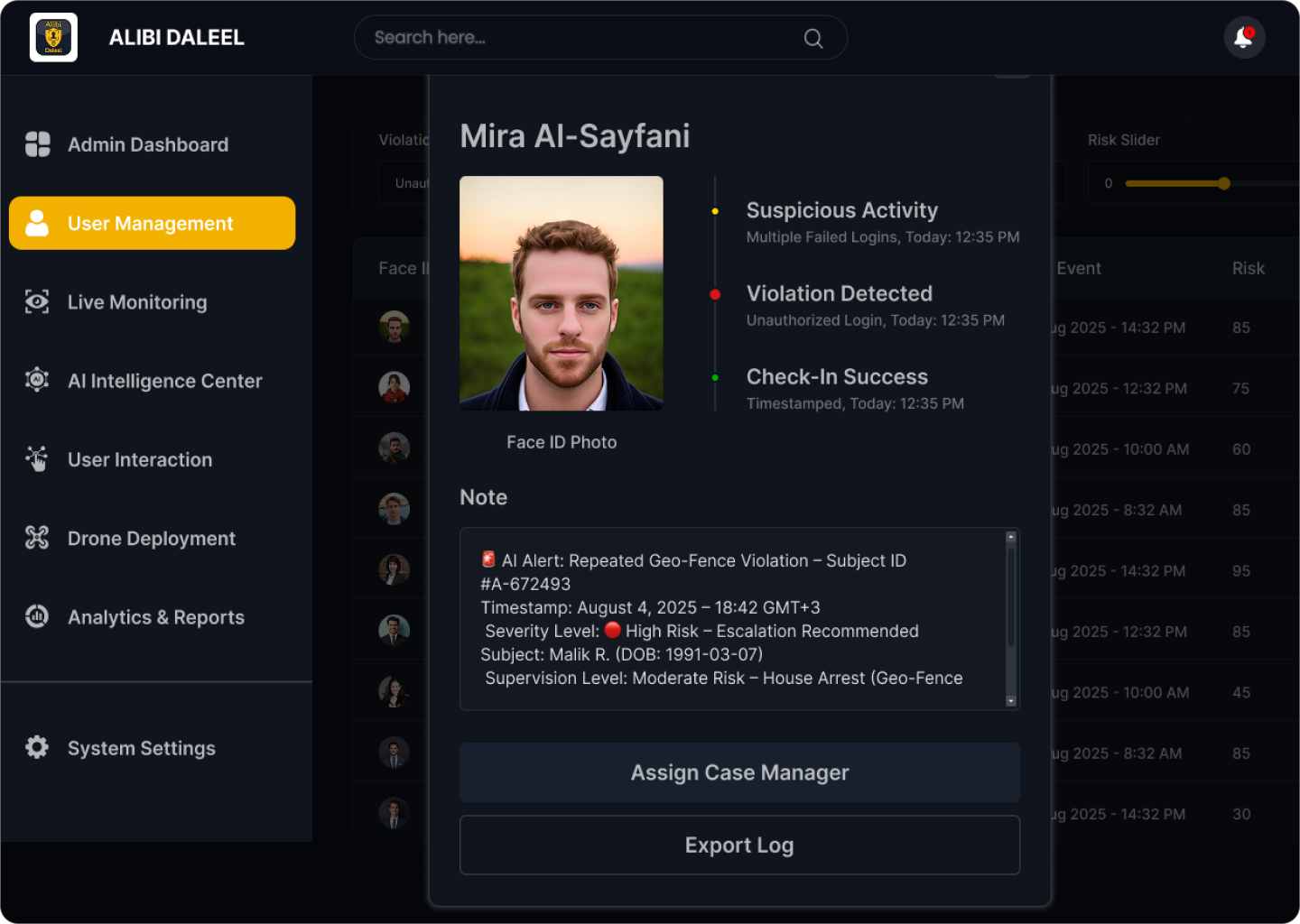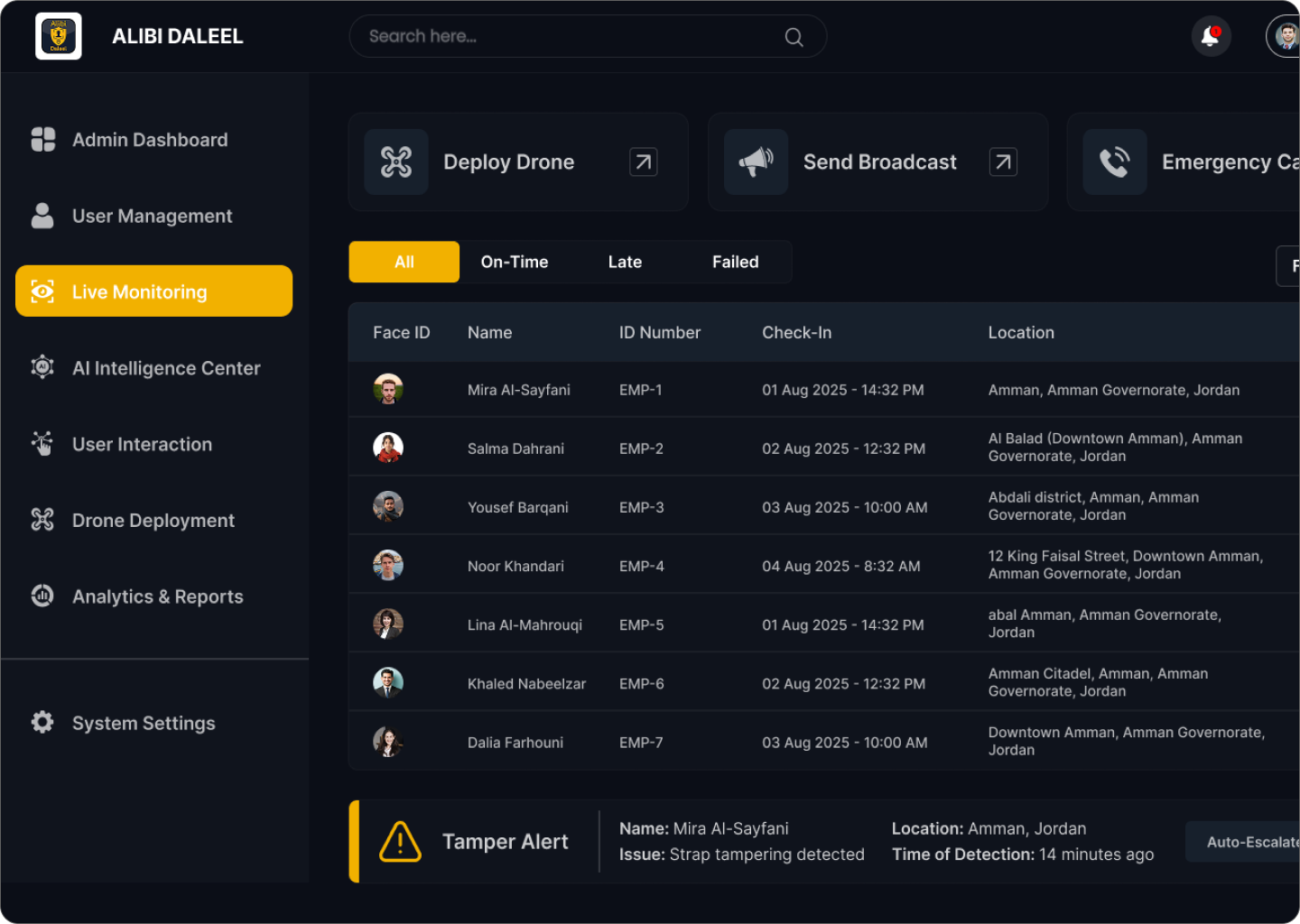 Alibi Admin Dashboard is a secure and reliable operations platform designed to give authorized teams real-time situational awareness over assets, locations, and unmanned systems for non-lethal, humanitarian, and defensive missions such as disaster response, survey missions, logistics coordination, and perimeter monitoring.