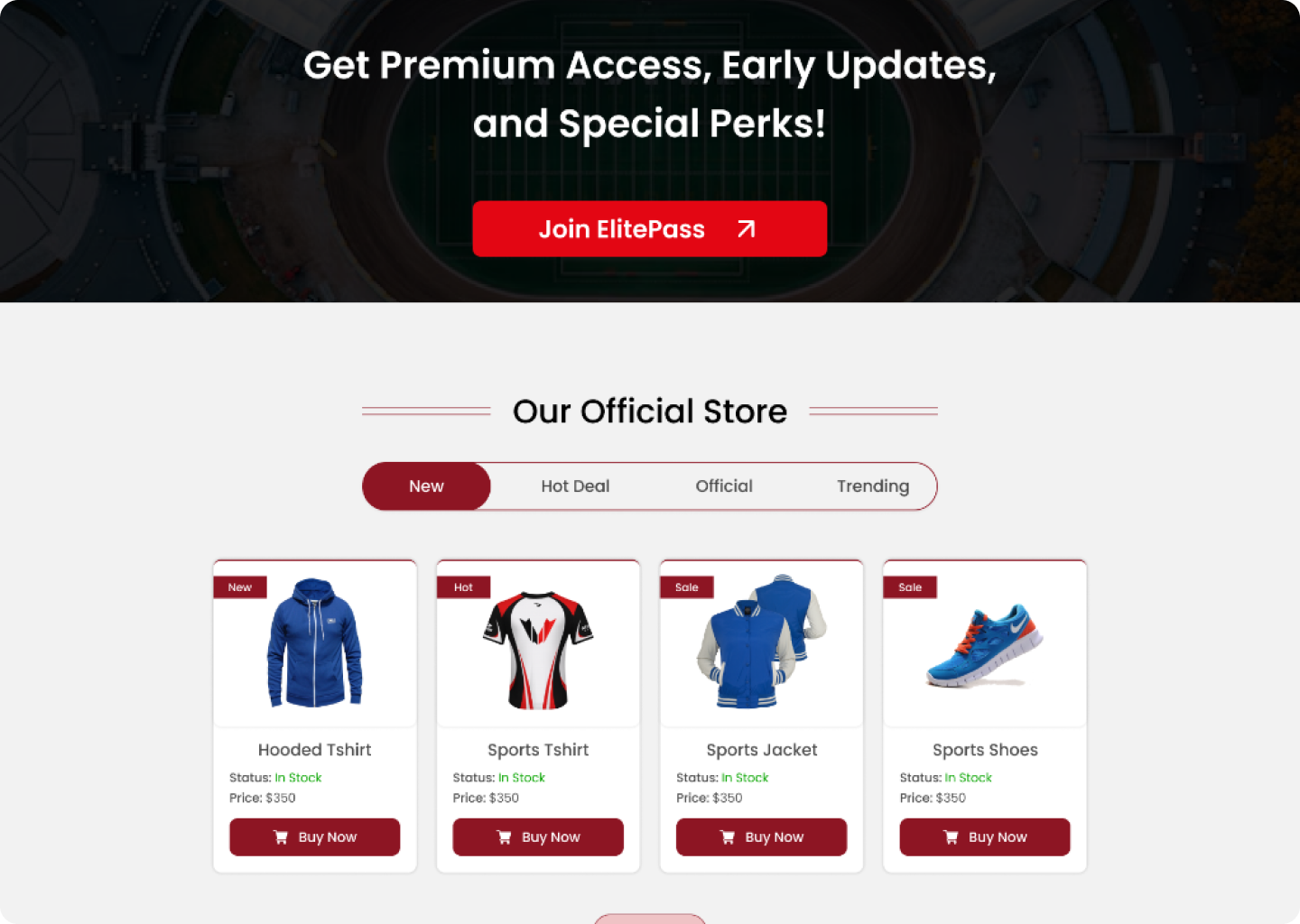 Sports fans often move between platforms—checking scores on one site and shopping for merchandise on another. I wanted to create a unified landing page where they could enjoy both experiences seamlessly.